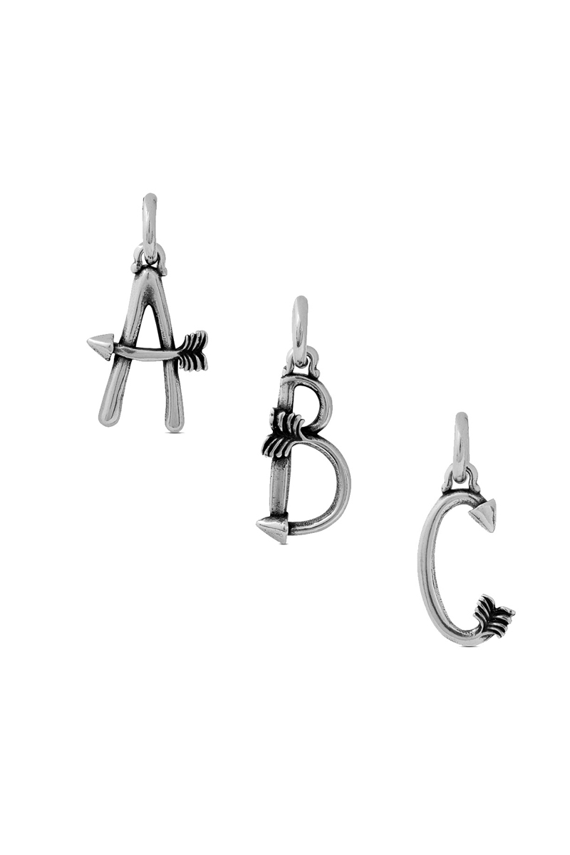 Colgante Inicial de metal bañado en plata fabricado en España por la marca Ciclón. Original diseño en forma de flecha.